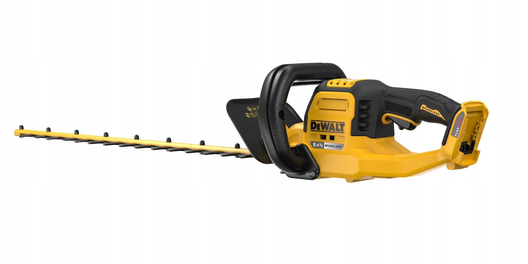 Mocne i wydajne akumulatorowe nożyce do żywopłotu DEWALT 54V wyposażono w wycinane laserowo ostrza z rozstawem zębów 31 mm, zapewniające gładsze cięcia i profesjonalną jakość za każdym razem.