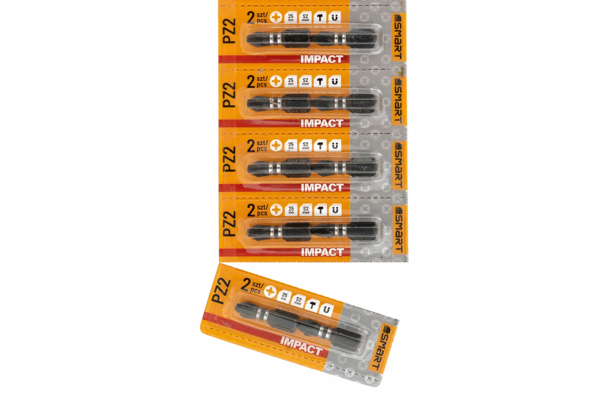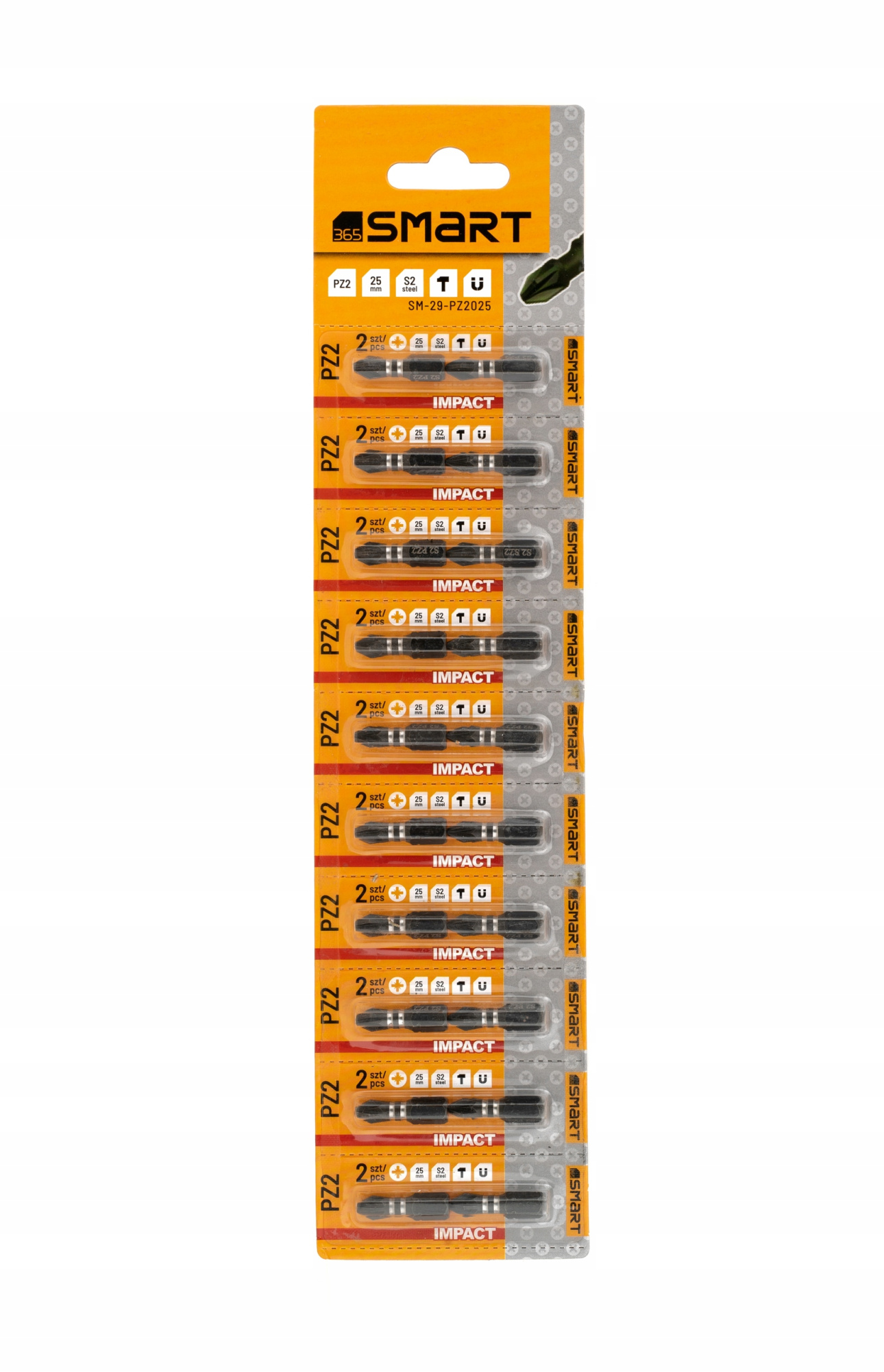 Blister składa się z 10 odrywalnych pasków, każdy z nich to dwa bity PZ2, umożliwiając klientom wybór dokładnej ilości bitów, której potrzebują.