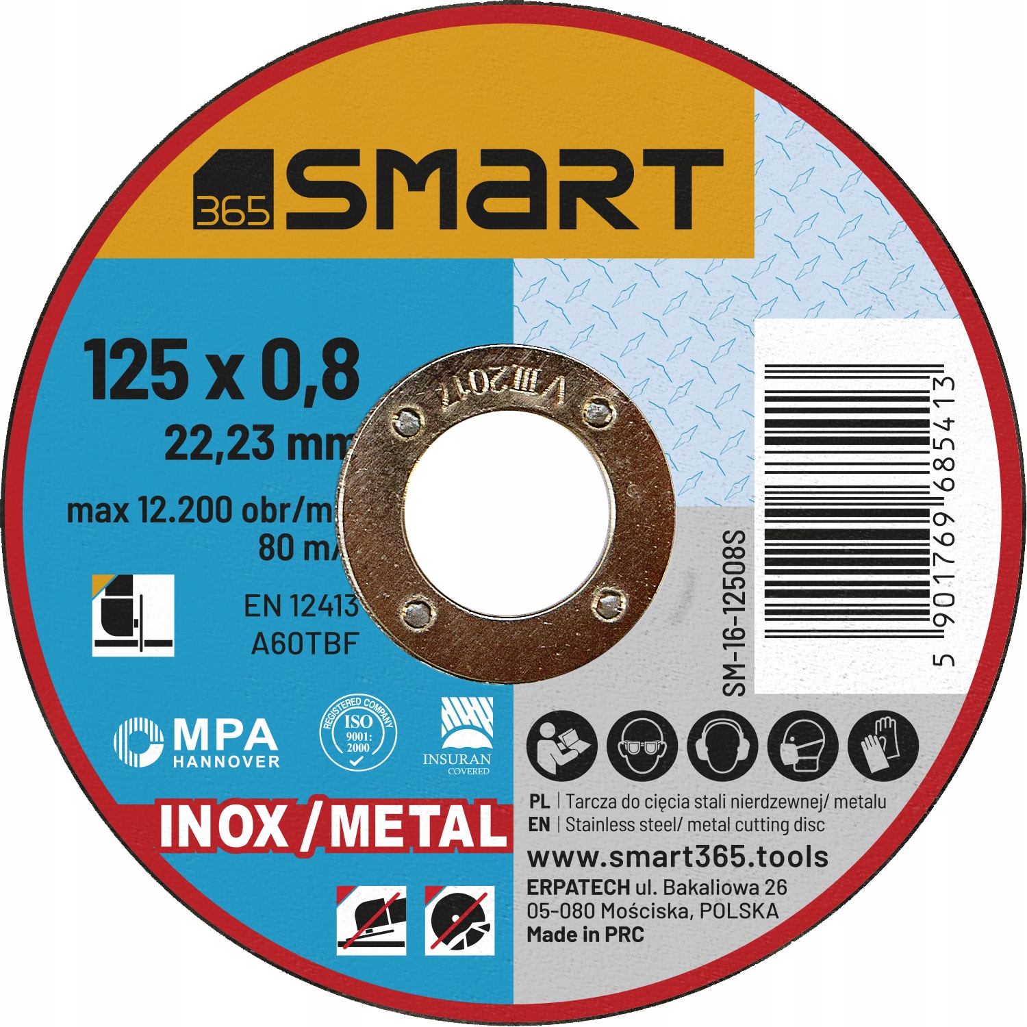 EAN: 5901769685413, Kod producenta: 16-12508S, Marka: Smart365, Średnica otworu: 22,2mm, Średnica tarczy: 125mm, , Zastosowanie: stal, stal nierdzewna - Inox, Rodzaj tarczy: tnąca