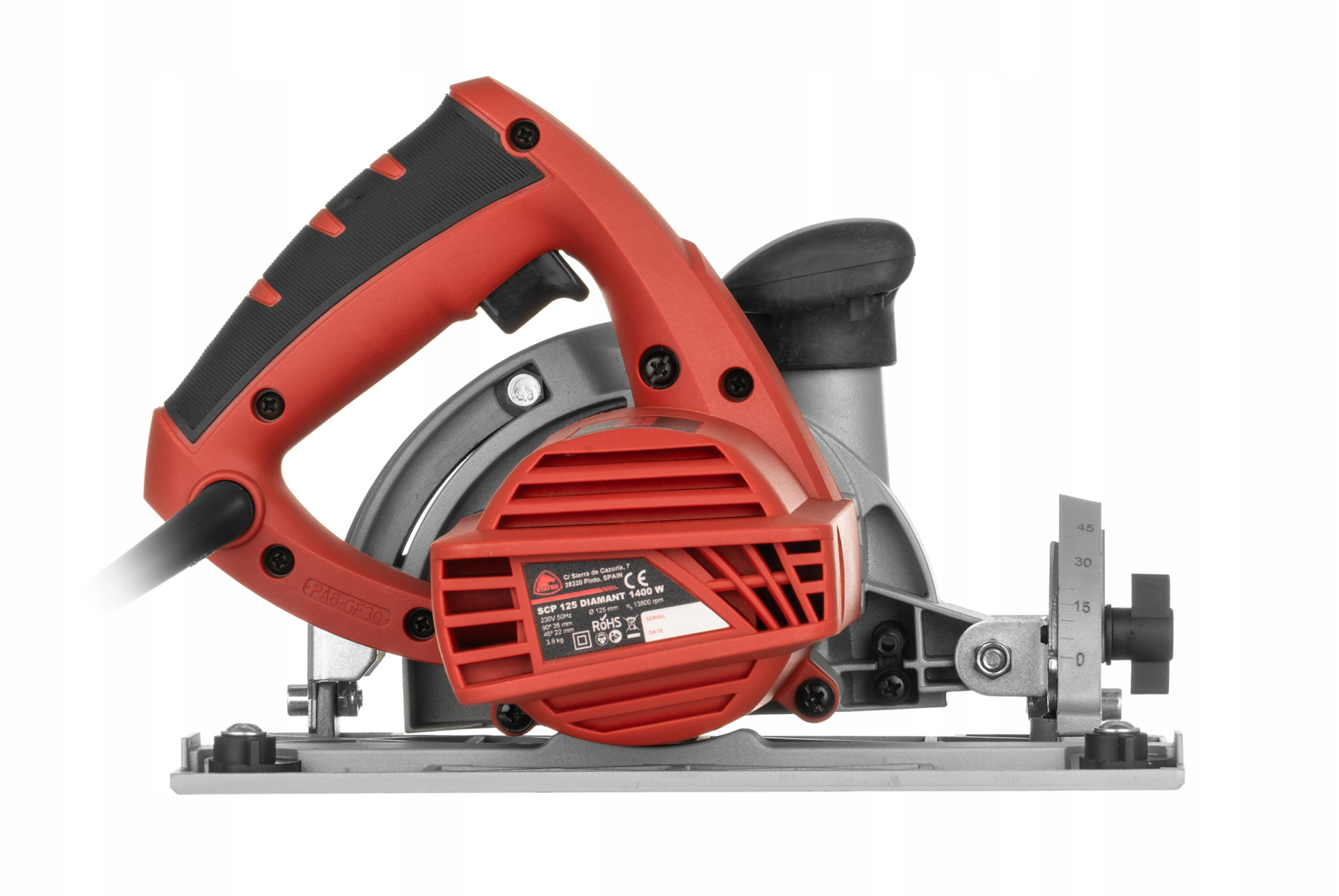 Różnorodność zastosowań i ergonomia – Możliwość wykonywania cięć pod kątem do 45° daje elastyczność w wykańczaniu narożników i nietypowych elementów. Gumowana, antypoślizgowa rękojeść poprawia komfort użytkowania i kontrolę nad narzędziem. Dzięki niewielkiej wadze urządzenie jest wygodne w transporcie i obsłudze.