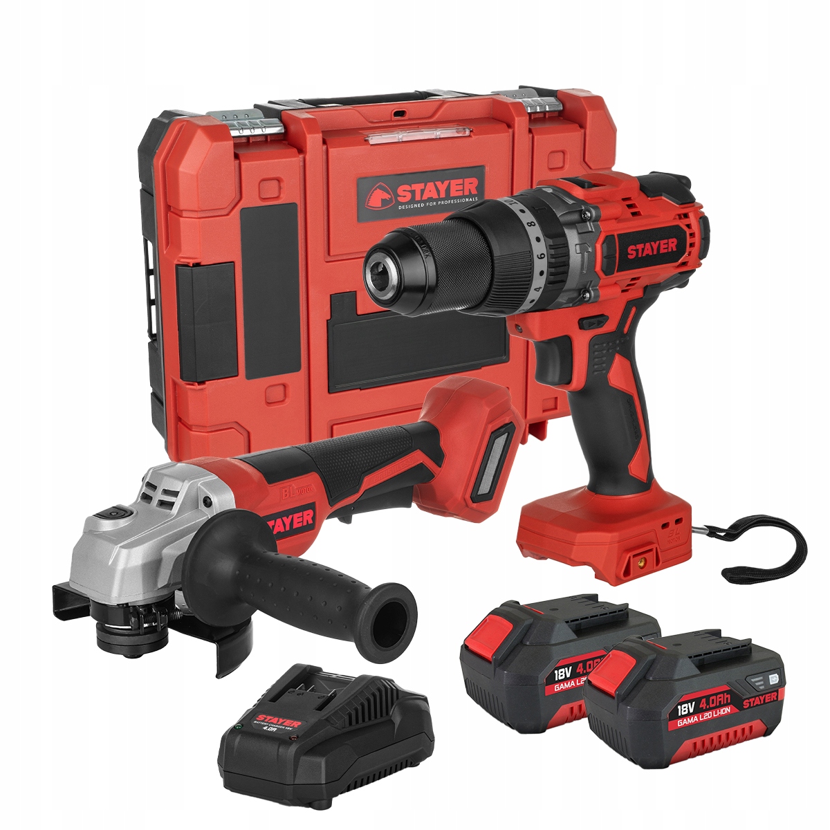 STAYER ZESTAW COMBO BL WIERTARKO-WKRĘTARKA 80NM SZLIFIERKA KĄTOWA 2X4AH