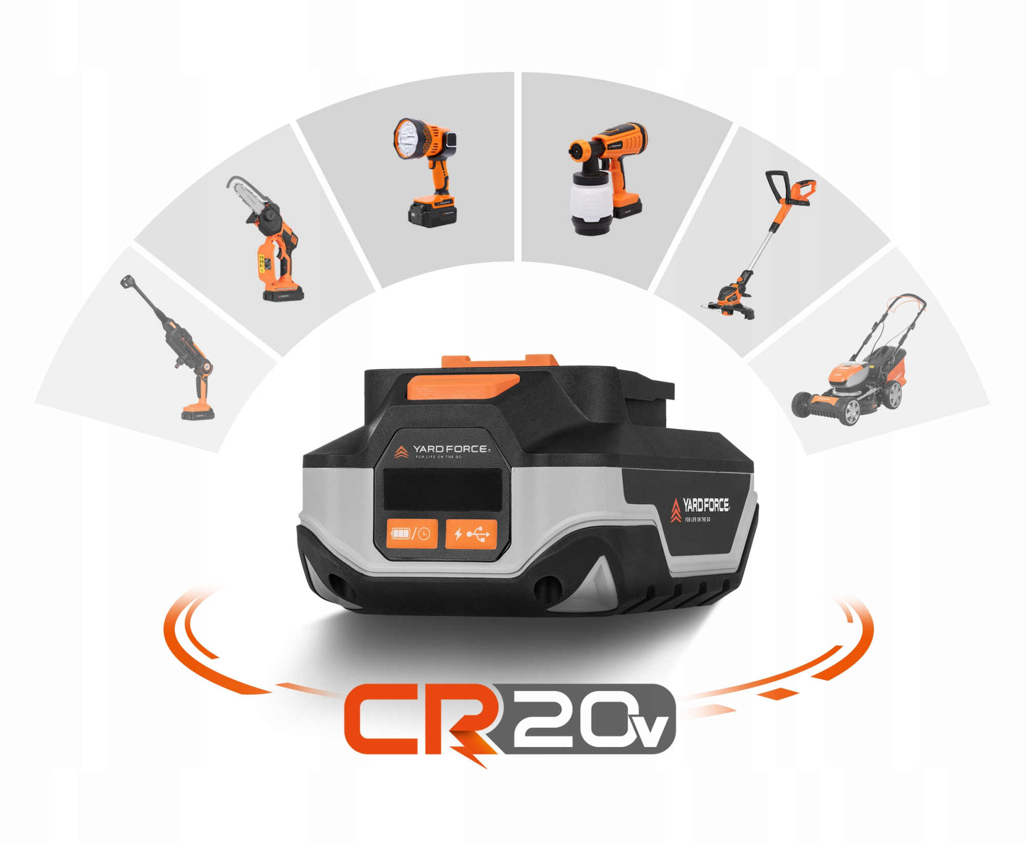 Jedna bateria - wiele narzędzi, do których możesz ją dopasować. Niezależnie, czy chcesz kosić, ciąć, przycinać, czyścić, czy oświetlać, wystarczy, że naładujesz akumulator CR20.